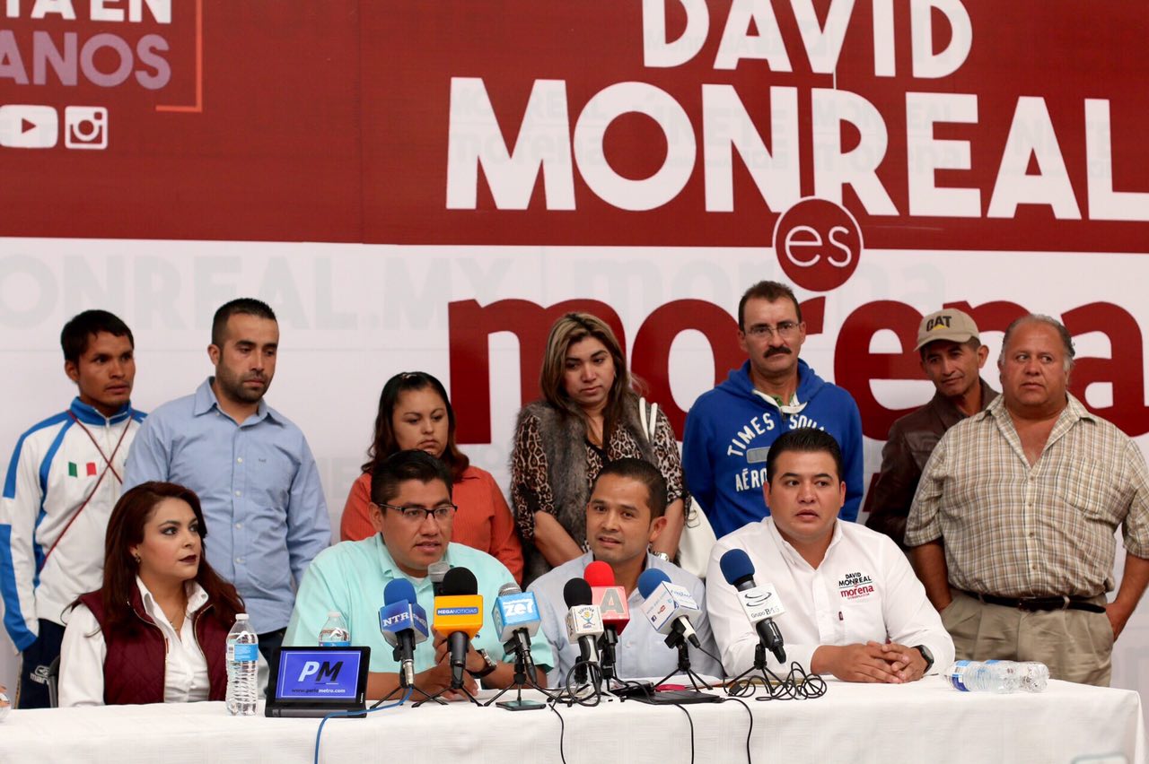 A la conferencia de prensa lo acompañaron Priscila Benítez Sánchez, candidata del tercer distrito, Silverio López García, hijo de Silverio López Magallanes, ex presidente estatal del PRI y Saúl Monreal, coordinador de campaña del candidato de Morena.