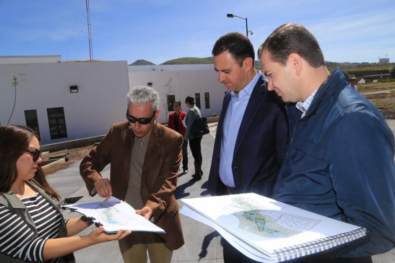 Durante el recorrido, Enciso Muñoz explicó que, adicional a las obras de urbanización y la construcción de los edificios, el COZCyT ha realizado otras acciones para el cuidado del medio ambiente, como la remoción de 1 mil 200 metros cúbicos de jales y el revestimiento de suelos con tierra vegetal.