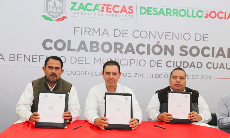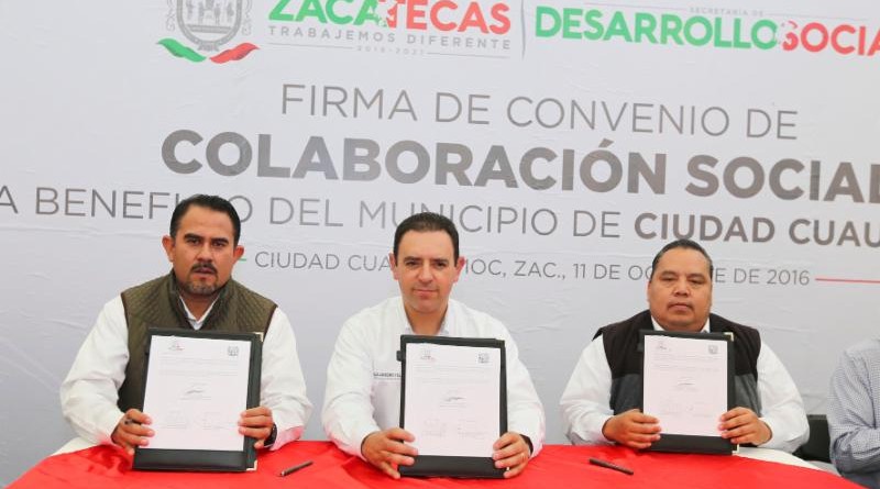 Genaro Codina.- “Hoy la gente nos exige que se atiendan sus problemas, que les llevemos agua potable, drenaje, que sus calles estén pavimentadas y que les garanticemos su seguridad; a ellos no les importa si somos de un partido o de otro, los ciudadanos lo que quieren es elevar su calidad de vida”, aseguró el Gobernador Alejandro Tello Cristerna, durante la firma del convenio de colaboración entre el Gobierno del Estado y los municipios de Genaro Codina, Ciudad Cuauhtémoc y Ojocaliente, así como la reunión con la alcaldesa de Luis Moya.