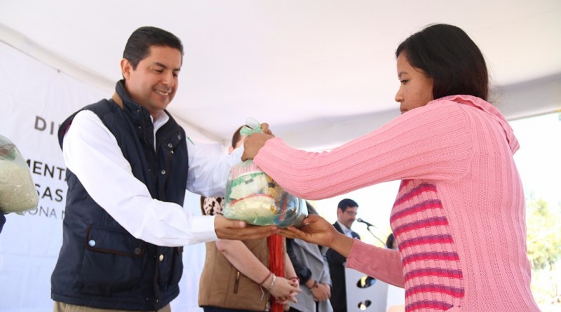 Lo anterior, durante la entrega de despensas por parte de la presidenta honorífica del Sistema Municipa DIF (SMDIF), Lucía Medina de Flores,