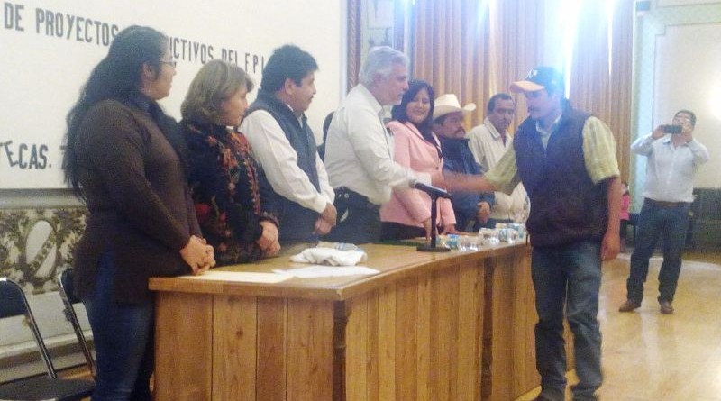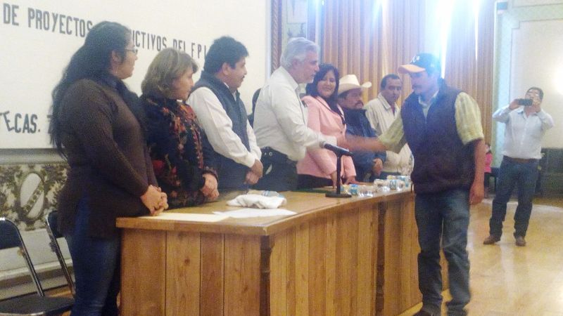Con el respaldo de la Secretaría de Desarrollo Social (Sedesol) en el rubro de Opciones Productivas; del Instituto Nacional de Empresas Sociales (INAES) y de la Secretaría de Agricultura (Sagarpa) en las opciones de Fappa-Promete, se entregaron apoyos a grupos de los municipios de Sombrerete, Guadalupe, Pánuco, Río Grande, Fresnillo, Villa de Cos, Cañitas de Felipe Pescador, Vetagrande y Trancoso.