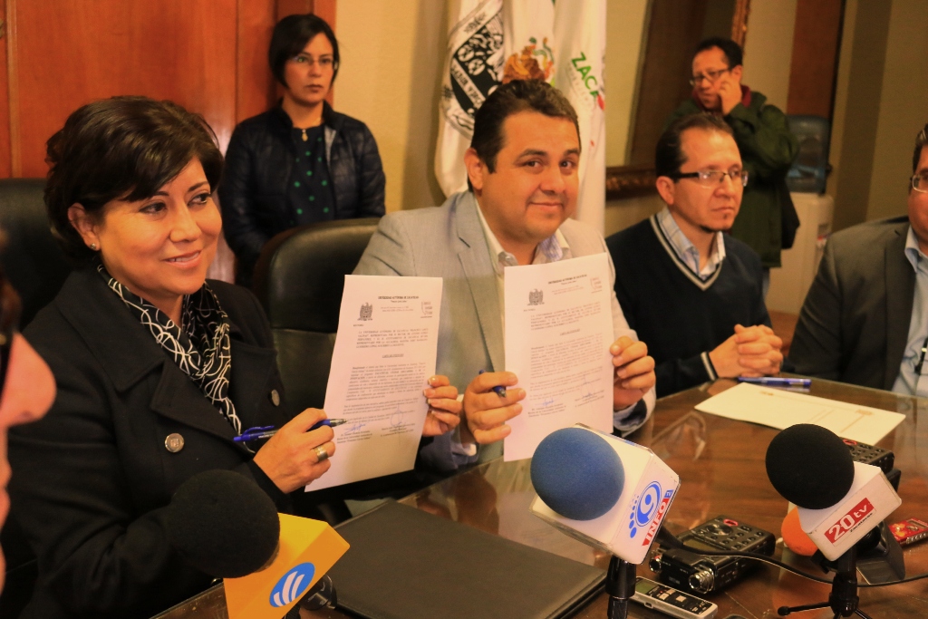 A la firma de la carta asistieron además, el síndico José Encarnación Rivera Muñoz, las regidoras Georgina Infante Méndez y Ana Emilia Pesci Martínez, presidentas de las comisiones de Educación y Cultura, respectivamente, así como directivos de la UAZ.