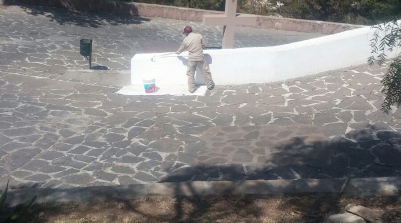 A la fecha ya se atendieron 136 metros cuadrados para borrado de grafitti y reparación de cornisas, escalones, piso y banquetas de la zona peatonal, donde se repararon 59 metros cuadrados de adoquín irregular y adocreto, además de que se está encalando 400 metros cuadrados del muro talud y 120 metros cuadrados con pintura vinílica, además de deshierbe y limpieza general.