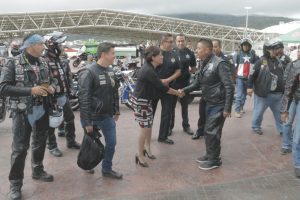 En las instalaciones de la Feria Nacional de Zacatecas, a la entrada del Multiforo, los bikers, encabezados por un grupo de policías federales motorizados, esperaron el banderazo de salida que corrió a cargo de la presidenta municipal Judit Guerrero López, así como de altos mandos de la Policía Federal.