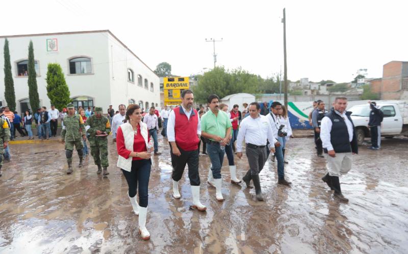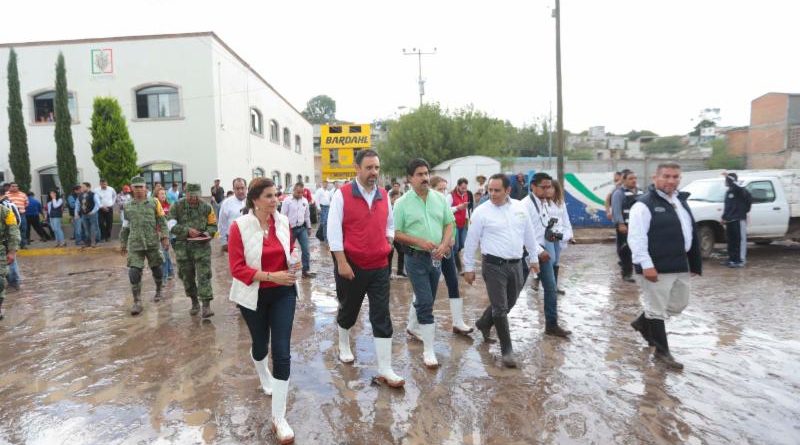 Valparaiso, Zac.- El Gobernador Alejandro Tello encabeza la atención integral del Gobierno del Estado al municipio de Valparaiso, luego de que se desbordara el arroyo Atotonilco y afectara decenas de comercios y viviendas, tras la lluvia intensa que se sucitó en la parte alta de la sierra, a las 20:30 horas del miércoles.