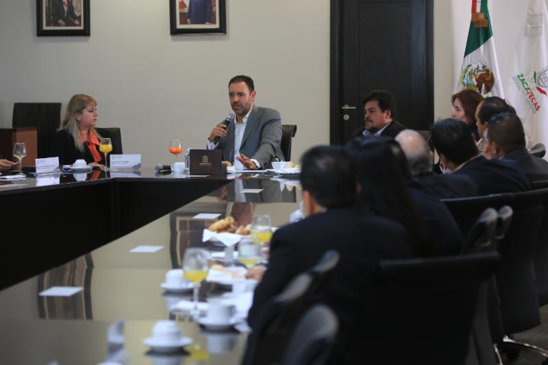 Zacatecas, Zac.- Con el fin de mejorar las políticas de obra pública, gestión social y seguridad, el Gobernador Alejandro Tello Cristerna mostró su disposición para abrir una red de mutua colaboración con la Federación de Colegios y Asociaciones de Profesionistas del Estado de Zacatecas (FECOAPEZ), con quienes dialogó durante la mañana de este viernes.