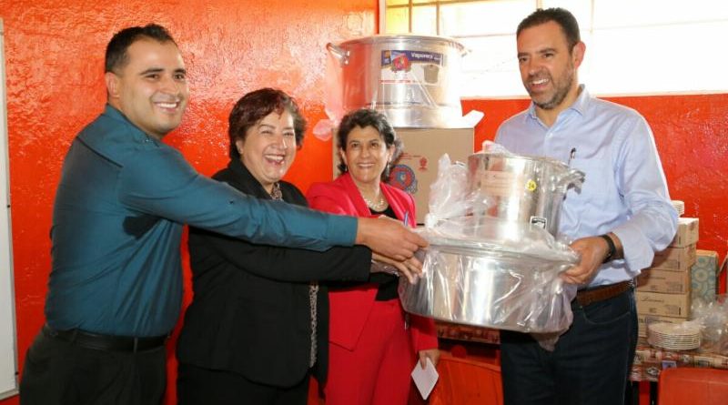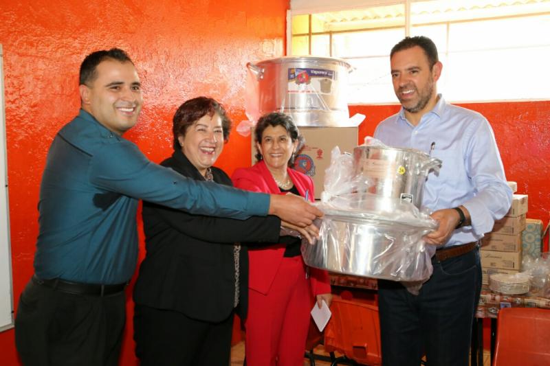 Por otra parte, Tello Cristerna, a través del Sistema Estatal DIF (SEDIF), entregó equipamiento para la cooperativa escolar, de tal manera que la población infantil consuma sus alimentos, durante el periodo de receso, en un espacio adecuado.
