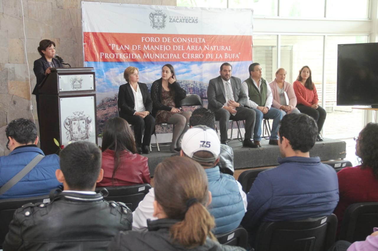 Al iniciar el Foro de Consulta Ciudadana sobre el Plan de Manejo Municipal del Área Natural Protegida del Cerro de La Bufa, la presidente municipal de la capital llamó a conformar el soporte del ordenamiento, preservación y operatividad sustentable de ese emblemático sitio de los zacatecanos y de México, dado que ahí se gestó una de las batallas que marcaron el devenir de la revolución.