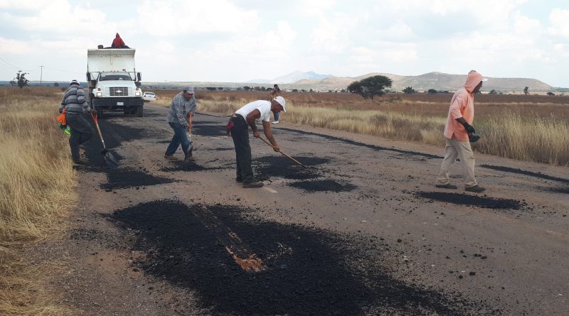 TRANCOSO, ZAC.- Producto de la labor de gestión del alcalde antorchista de Trancoso, César Ortiz Canizales, ante la Secretaría de Infraestructura del Gobierno del Estado, se emprenden tareas de bacheo y conservación de la carretera estatal Trancoso – San José del Carmen.