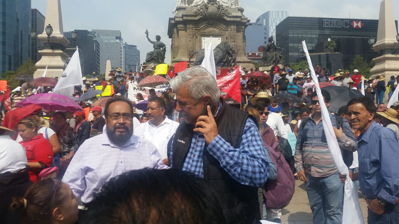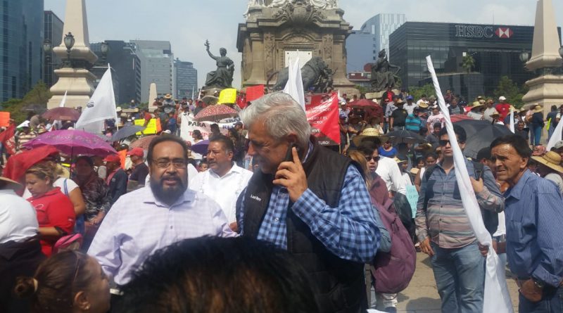 CDMX.- Luego de que un contingente de cerca de Cinco mil personas pertenecientes a la Coordinadora Nacional Plan de Ayala (CNPA), el Frente de Comunidades Afectadas por la Minería (FCAM) y el Frente Popular de Lucha de Zacatecas (FPLZ) encabezado por el dirigente nacional y senador José Narro Céspedes, partieran en marcha del Ángel de la Independencia , llegan apostarse a la Secretaría de Gobernación para iniciar la mesa de diálogo en torno al conflicto Peñasquito, y en espera que la parte del corporativo muestre voluntad de diálogo, planteado para las 17:00 horas de este día.