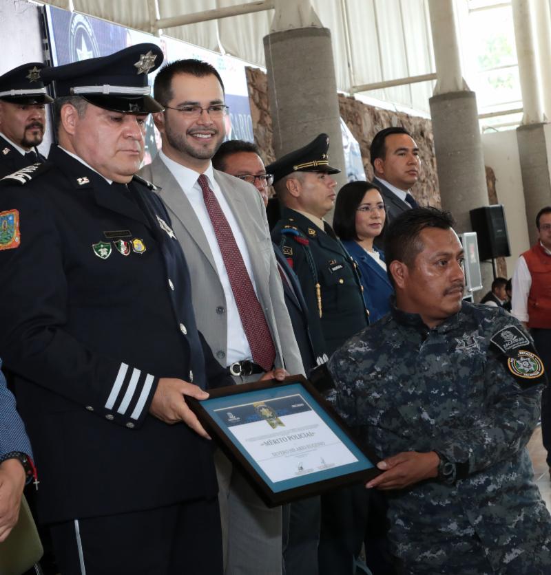 El Secretario General de Gobierno hizo entrega de reconocimientos a 10 elementos destacados por desempeño y trayectoria, así como la Cruz de Honor, a la madre del policía Julio Armando Chávez, quien perdió la vida en cumplimiento del deber.