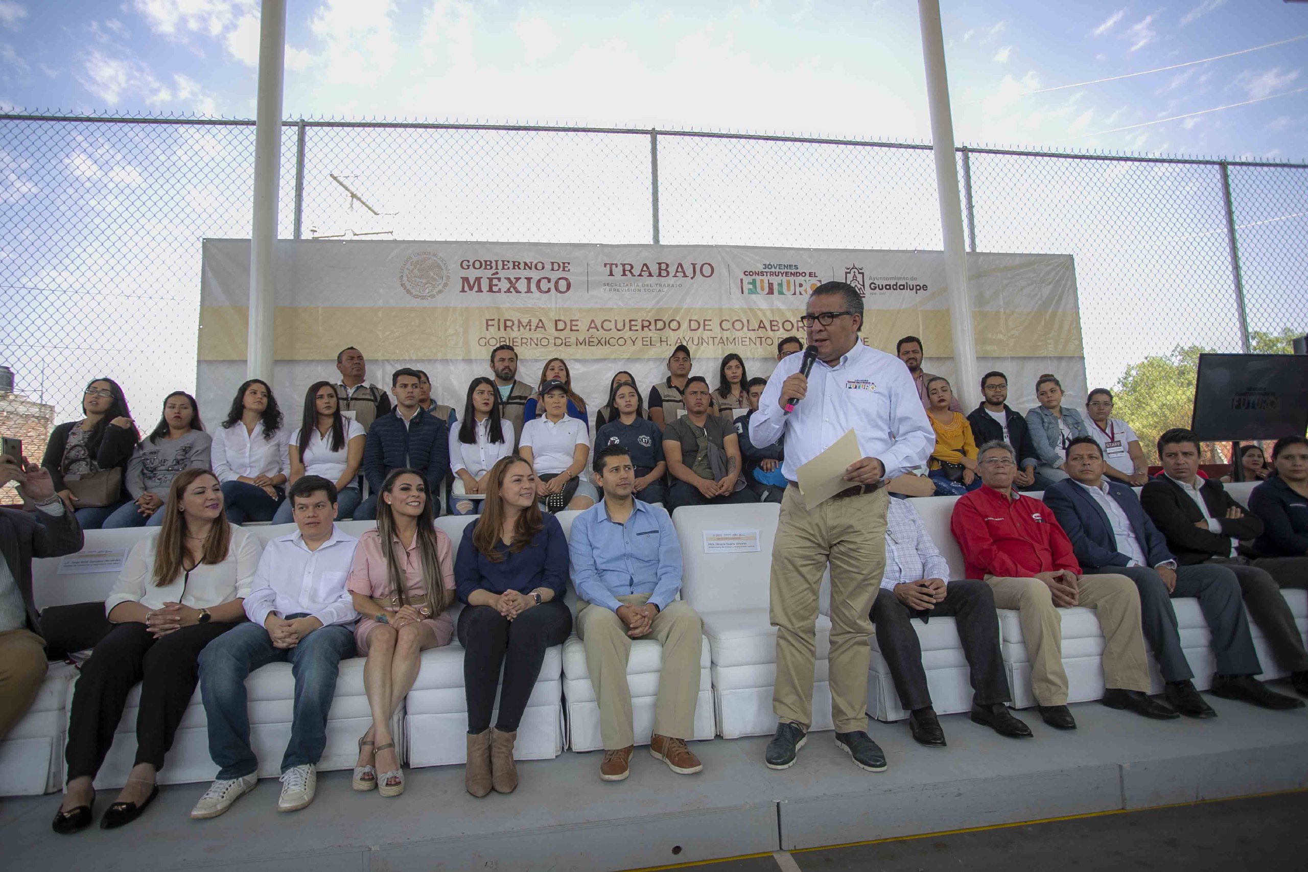 En el marco de la firma del convenio de colaboración del Gobierno de México y el municipio de Guadalupe, en el que estuvieron presentes la delegada de Programas para el Desarrollo, Verónica Díaz Robles, el edil Julio César Chávez Padilla, la subdelegada regional de Guadalupe de Programas para el Desarrollo, Priscila Benítez y la coordinadora operativa de Jóvenes Construyendo el Futuro en la entidad, Edna López Hernández, entre otros, el funcionario federal destacó que este esquema se ha convertido en uno de los programas estrella del Presidente Andrés Manuel López Obrador pues, a cinco meses de operación, ha vinculado a 637 mil 996 jóvenes a centros de trabajo en todo el país.