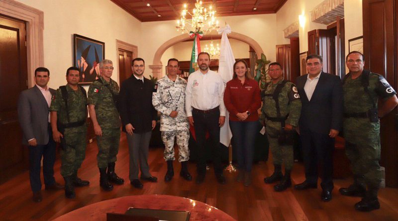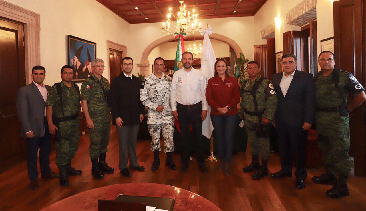 A fin de coadyuvar a la construcción de la paz en el país y particularmente en Zacatecas, el Gobierno de México, por medio de la Quinta Coordinación Regional de la Guardia Nacional, a cargo del comisionado comandante Eustorgio Villalba López, y de la delegada de Programas para el Desarrollo en Zacatecas, Verónica Díaz Robles, informó a las autoridades estatales encabezadas por el gobernador Alejandro Tello sobre las acciones que esta corporación realizará en Zacatecas a partir del arribo de los elementos asignados a la entidad.