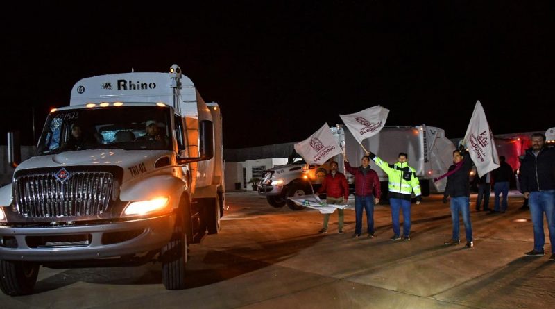 A primera hora de este lunes 3 de febrero, Julio César Chávez, acompañado del Director de Servicios Públicos, Francisco Javier Soria Hernández; del Secretario de Gobierno, José Saldívar Alcalde, y de representantes de la empresa, dieron salida a los camiones modelo 2020 que cubrirán todas las rutas de recolección de residuos en el municipio de Guadalupe.