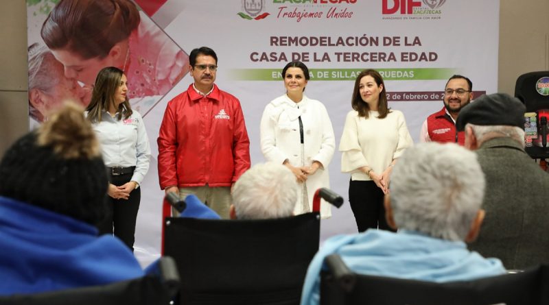 Zacatecas, Zac.- La Presidenta Honorífica del Sistema Estatal para el Desarrollo Integral de la Familia (SEDIF), Cristina Rodríguez, entregó la remodelación de la Casa Hogar de la Tercera Edad, así como sillas de ruedas a los adultos mayores albergados en este lugar.