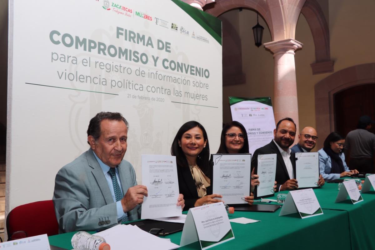 También firmaron carta compromiso el gobierno estatal, la Segob, el IEEZ, el TRIJEZ, la Comisión de Derechos Humanos del Estado de Zacatecas y la Fiscalía General de Justicia del Estado, para impulsar el registro de datos de este tipo de violencia.