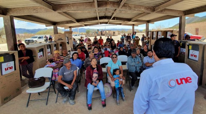 También con UNE Equipa tu Hogar se repartieron 44 refrigeradores, 25 lavadoras y 42 estufas con horno a 170 familias de las comunidades de Antiguo Los Indios, Apizolaya, Caopas, El Maderito, El Rodeo, Estación Camacho, La Lagrimilla, La Palmilla, La Pendencia, Nuevo Tampico, San Juan de los Charcos, San Antonio de la Sierrecilla, Puerto del Mimbre y Francisco Villa.