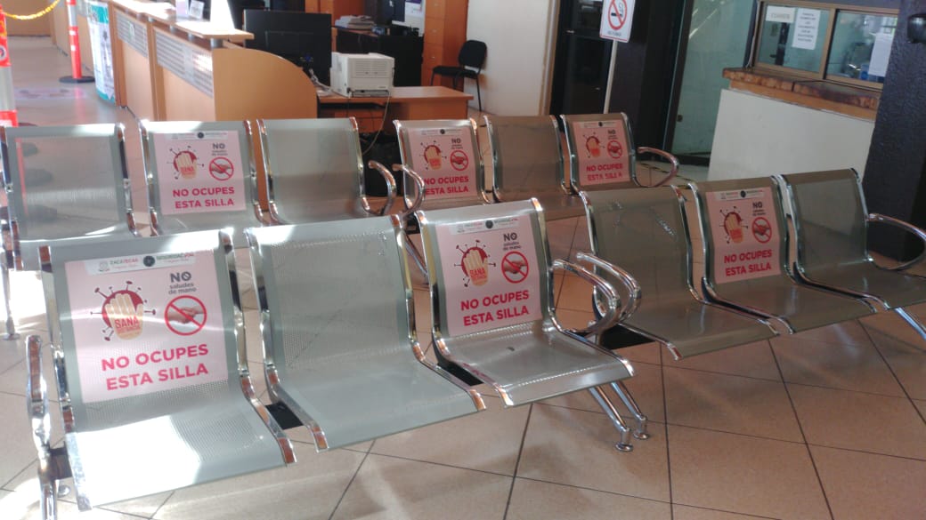 Francisco Oswaldo Caldera Murillo, titular de vialidad en el estado, dijo que debido a que se continúa con la atención de trámites a los ciudadanos, el personal del departamento de infraestructura vial colocó vinilo adhesivo con indicaciones para que las personas cuenten con la sana distancia, recomendada por autoridades de la Secretaría de Salud.