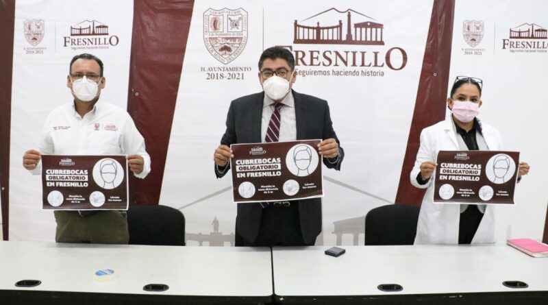 El Alcalde, Saúl Monreal Ávila, en conferencia de prensa dio a conocer el acuerdo del uso de cubrebocas obligatorio, donde el sector salud a través de la Jurisdicción Sanitaria y el IMSS en coordinación con el departamento de Sanidad del Ayuntamiento de Fresnillo, realizaran una campaña de concientización en todo el municipio, en especial en empresas y comercios para que no se baje la guardia.