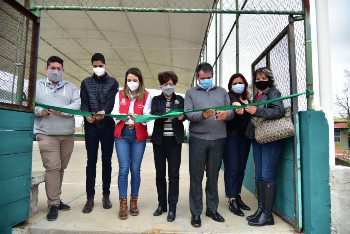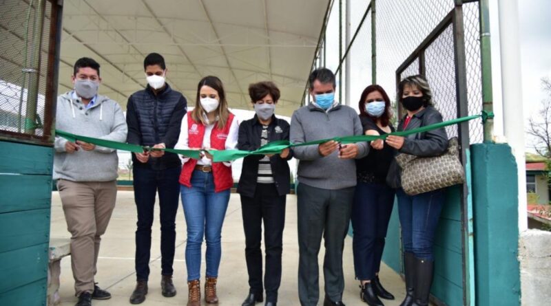 En la comunidad El Lampotal, en Vetagrande, rehabilitaron la cancha de usos múltiples del Cecytez, a la que también colocaron malla perimetral, para hacer más funcional el espacio.
