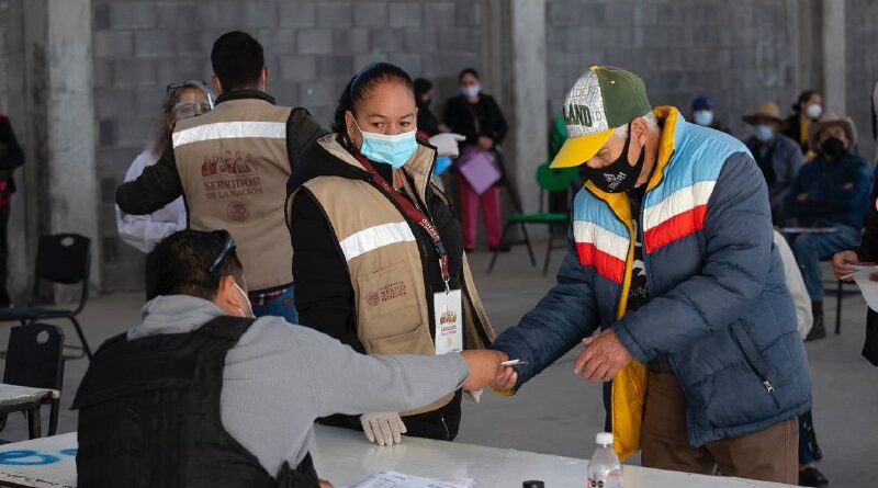 LORETO, ZACATECAS. En el marco del operativo de pago de la Pensión para el Bienestar, el Gobierno de México entregó los apoyos del bimestre enero-febrero a 2 mil 400 adultos mayores que habitan en comunidades de los municipios Mazapil, Sombrerete, Apulco, Santa María de la Paz, Loreto, Ojocaliente y Valparaíso.