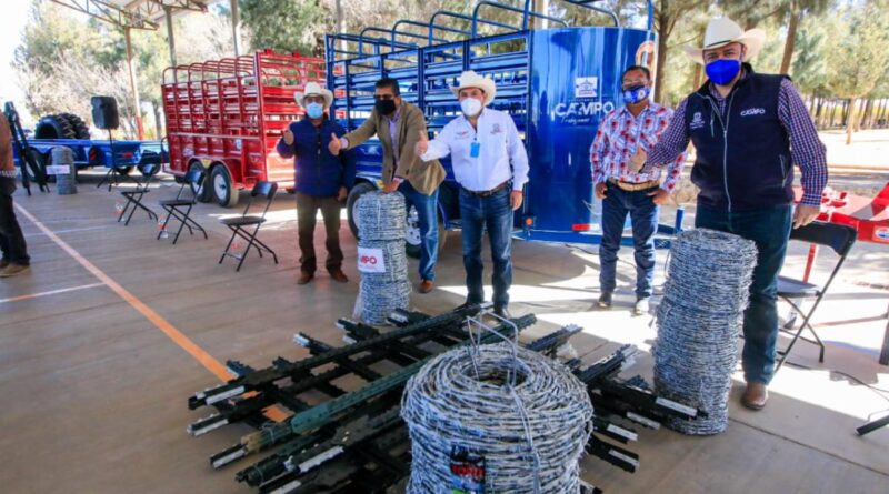 A Río Grande, el funcionario llevó llantas para tractor, cercos perimetrales, sembradoras y remolques, con una inversión de 2 millones 831 mil pesos.