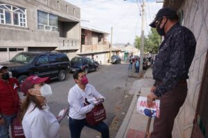 Por la tarde, Julio César Chávez candidato a la alcaldía de Guadalupe y Julia Olguín, tocaron puertas en la segunda y tercera sección de la colonia Tierra y Libertad.