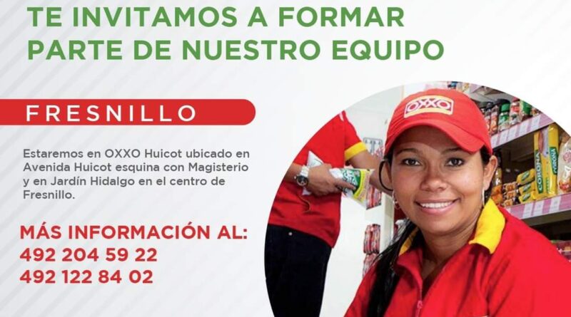 Habrá reclutamiento presencial para OXXO, en Fresnillo