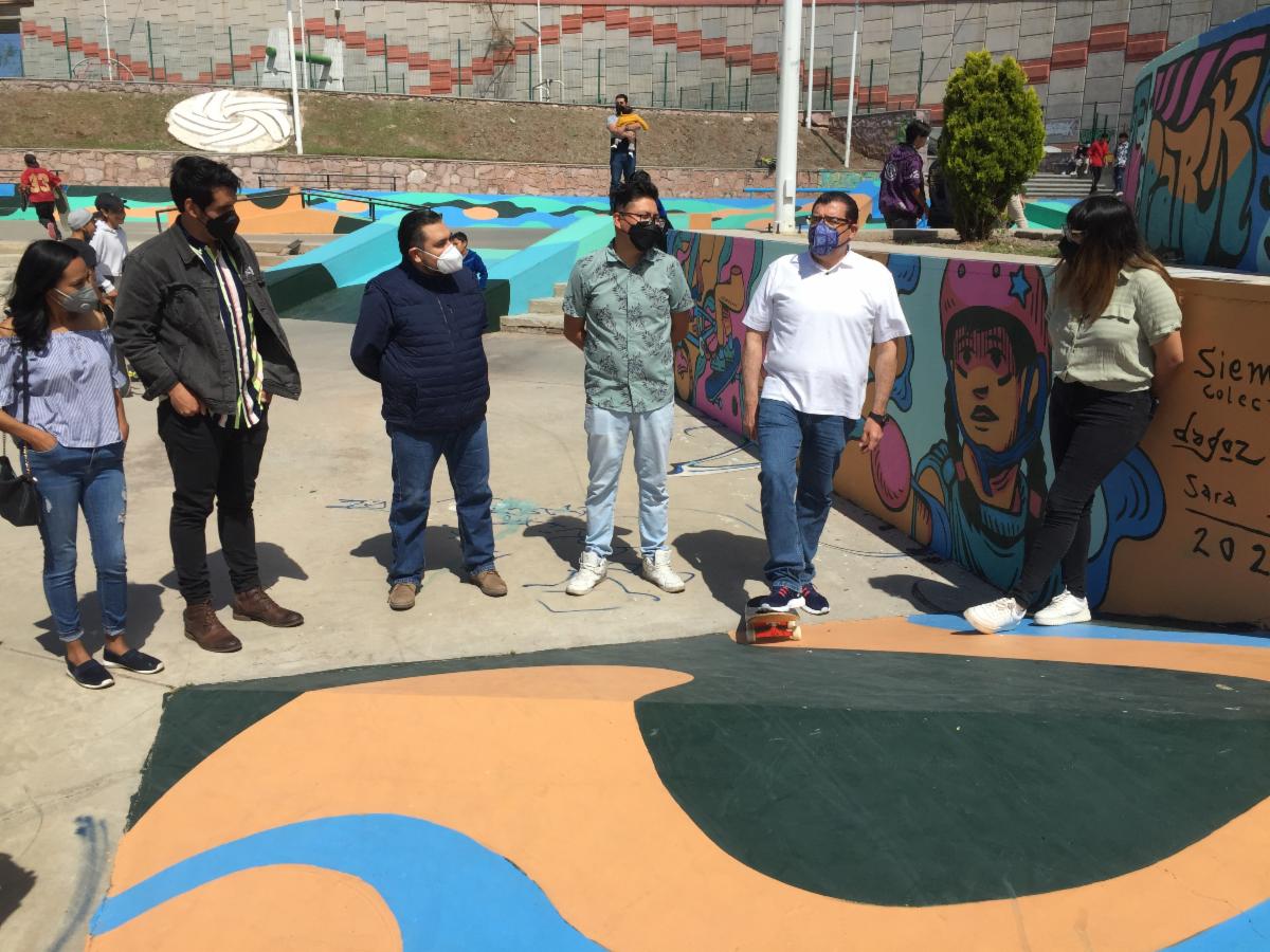 Finalmente, Sara Miranda Gutiérrez, representante de Colectiva Siembra, acompañada de otros artistas, explicó que a través de los murales que pintaron en el lugar buscan difundir en qué consiste esta actividad deportiva y sensibilizar a la población sobre su práctica.