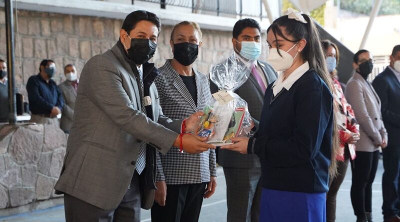 Acompañado de la secretaria de Desarrollo Social, Cecilia Monjaraz, el alcalde dio estos paquetes con el fin de incentivar el estudio entre las y los adolescentes.