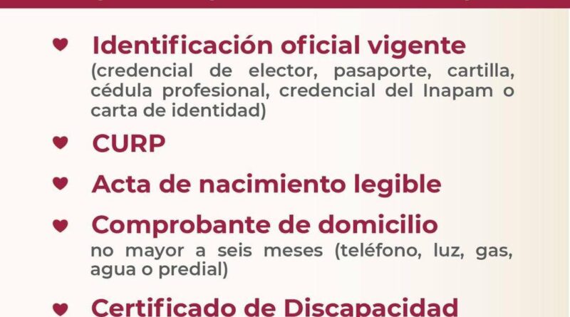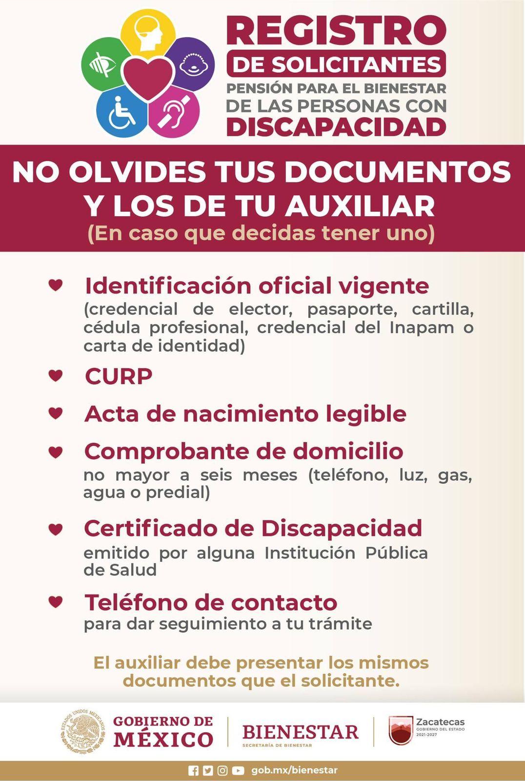 También, se tienen que presentar un comprobante de domicilio no mayor a seis meses (teléfono, electricidad, gas, agua potable o predial); certificado de discapacidad emitido por alguna institución de salud; así como un número telefónico de contacto.