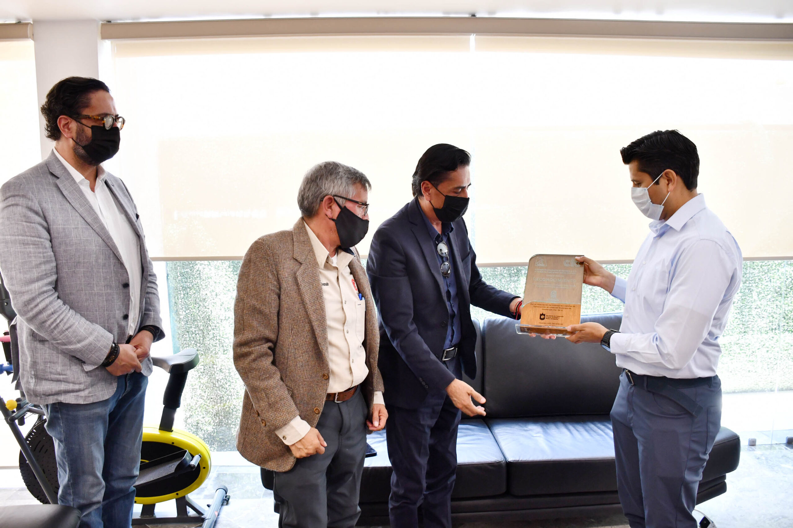 El Presidente Municipal de Guadalupe, Julio César Chávez Padilla, recibió de Homero Ulises de la Torre Dueñas, Presidente del Colegio de Arquitectos, y de Enrique Acevedo Alvarado, Presidente del Colegio de Ingenieros, a nombre de sus agremiados, un reconocimiento por la puesta en operación de la plataforma de licencias en línea, que es hoy en día la primera en esta región del estado.