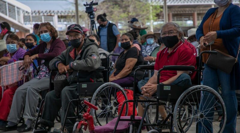 Jerez, Zac., 19 de julio de 2022.- Este martes fue un día muy importante para María del Refugio de la Cruz Martínez, porque recibió la silla de ruedas que tanta falta le hace para recuperarse de una operación de la cadera. Junto con ella, más de 2 mil jerezanos de la cabecera municipal y sus comunidades acudieron a recibir, además, su Pensión para el Bienestar de los Adultos Mayores.