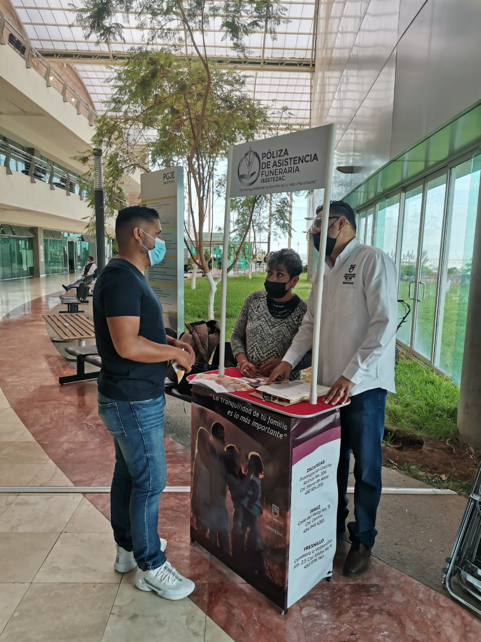 Zacatecas, Zac., 28 de agosto de 2022.- Con la finalidad de detallar los servicios de Asistencia Funeraria a la derechohabiencia cotizante, se instaló en la Fiscalía General de Justicia del Estado de Zacatecas (FGJE) el primer módulo de información.