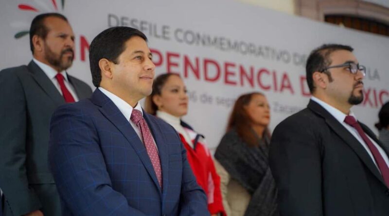 El presidente municipal de Zacatecas, Jorge Miranda Castro, asistió a los honores a la bandera y desfile conmemorativo del 212 aniversario del inicio de la Independencia de México.
