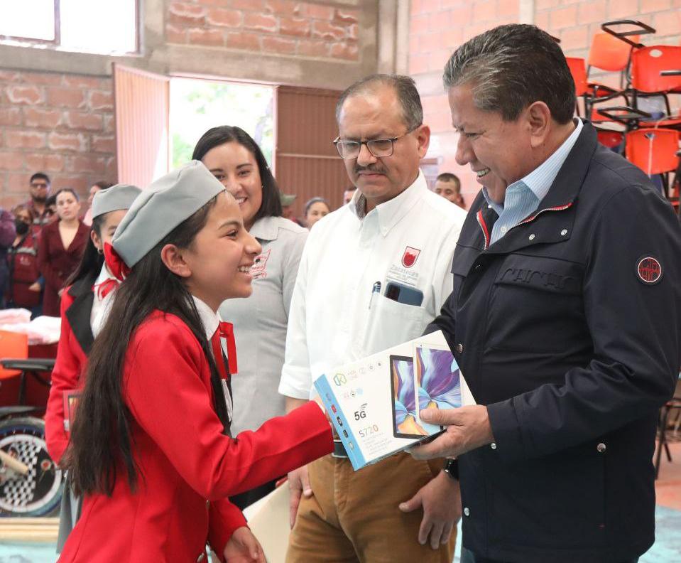 Arropado por la alegría de niñas y niños de la Escuela Independencia, el mandatario les entregó, además, material escolar, mesas y butacas, uniformes y tablets a los mejores promedios. También estuvo acompañado por autoridades educativas, directivos y docentes.
