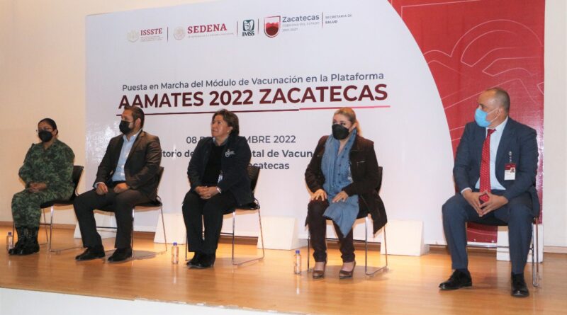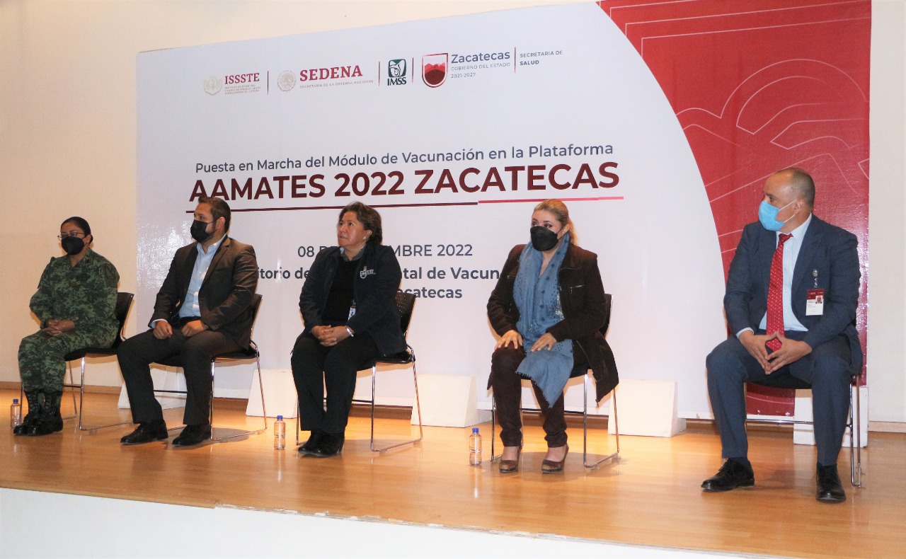 Ana María Monreal Ávila, directora de Salud Pública de la Secretaría de Salud (SSZ), acompañada por representantes de los institutos Mexicano del Seguro Social (IMSS), de Seguridad y Servicios Sociales para los Trabajadores del Estado (ISSSTE) y de la Secretaría de la Defensa Nacional (Sedena), hicieron la presentación del lanzamiento del módulo de vacunación dentro de AAMATES.