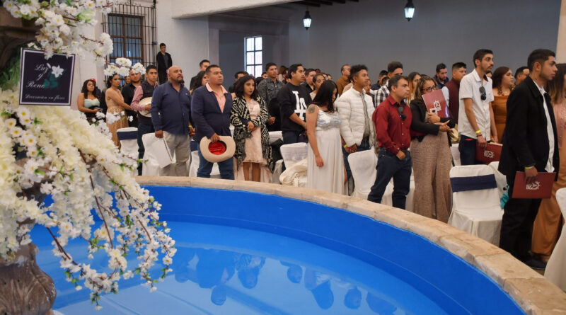 Un total de 105 parejas contrajeron matrimonio civil este 14 de febrero en las ceremonias colectivas organizadas por el Ayuntamiento de Guadalupe, que preside Julio César Chávez Padilla, a través de las Oficialías del Registro Civil del Municipio, y que tuvieron lugar en la Cava Domecq del Centro de Ferias y en la Casa Grande de la comunidad de Tacoaleche.
