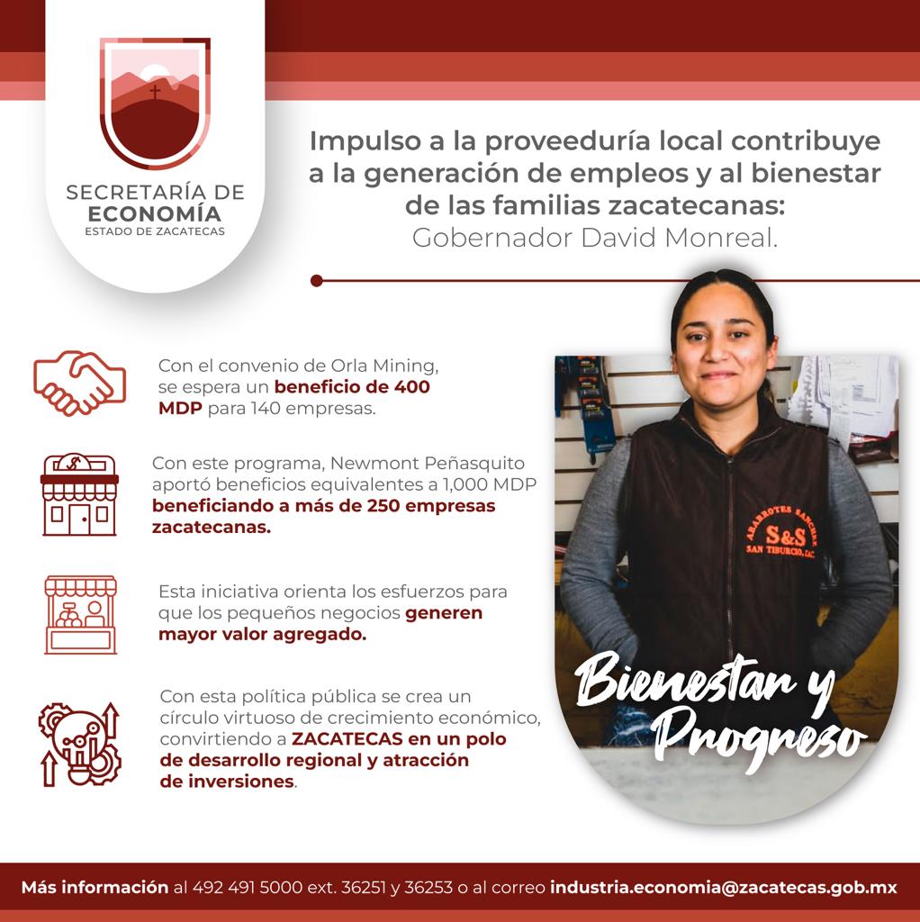 Un ejemplo del éxito de este programa es el convenio con Newmont Peñasquito, el cual trajo beneficios equivalentes a 1 mil millones de pesos que beneficiaron a más de 250 empresas zacatecanas.