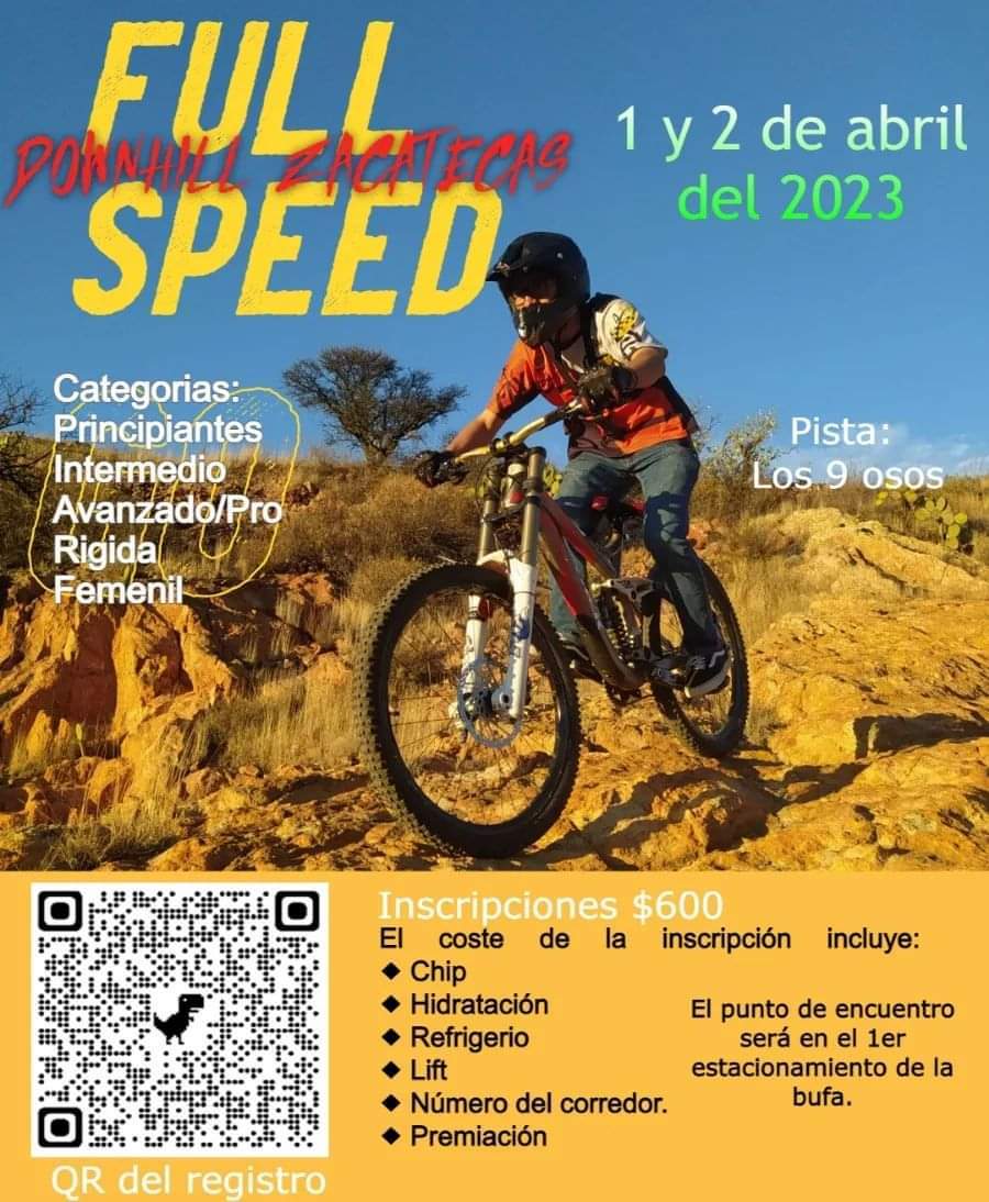 Los interesados podrán obtener mayor información en las redes sociales de la Secretaría de Turismo (Secturz), en fuu_speed_downhill_zacatecas y en los números de teléfono: 4921922454 y 4922322999.