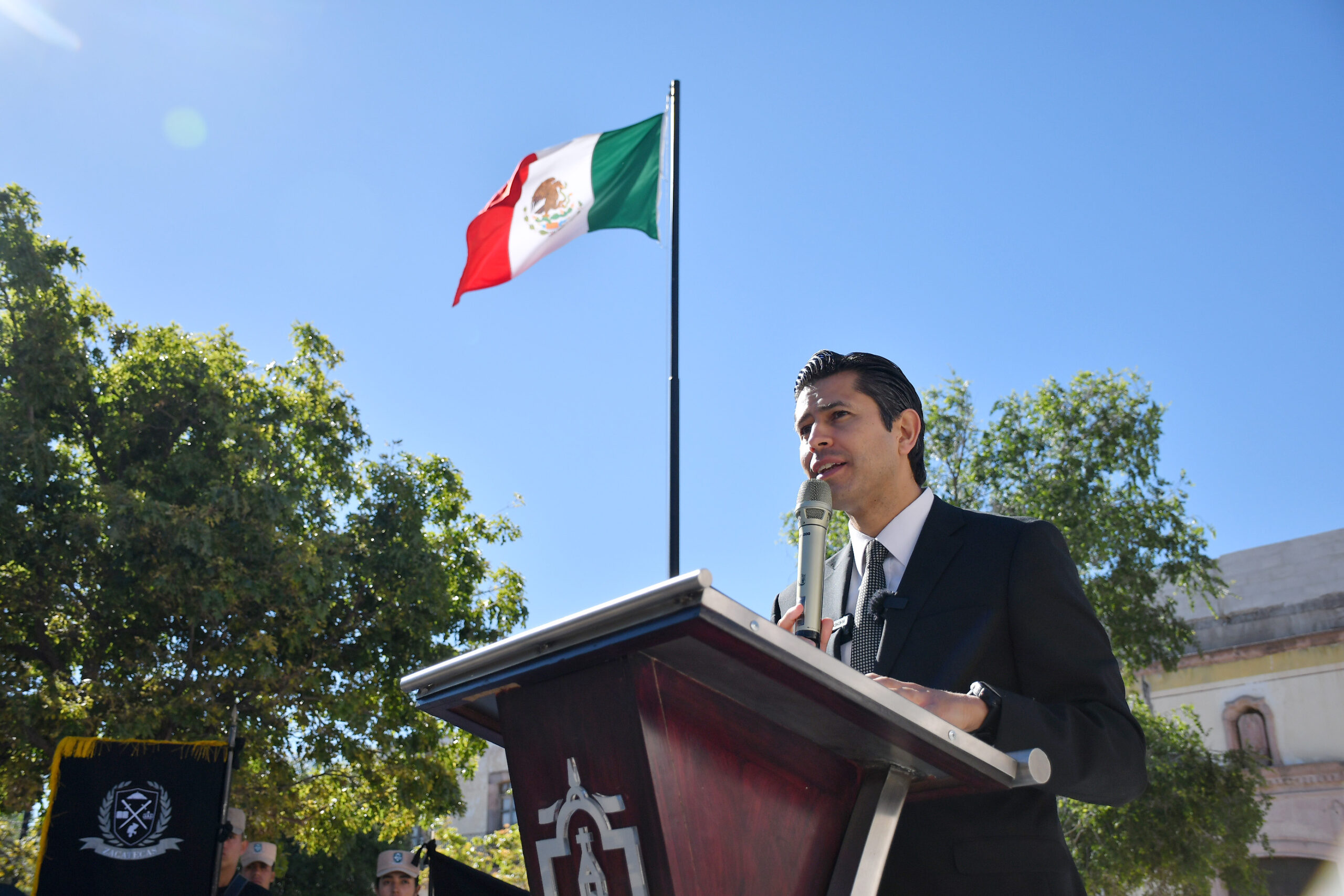 Tras llevarse a cabo los honores a la Bandera por la escolta y banda de guerra del Bachillerato General Militarizado, el alcalde guadalupense destacó que Benito Juárez García consolidó las bases de nuestra nación al darle coherencia y sentido a su mandato a través de la Reforma de la Constitución Política de los Estados Unidos Mexicanos y su manera de hacer políticas públicas, teniendo como base fundamental de su gobierno, la cercanía con la gente más vulnerable.