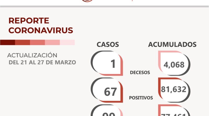 Además, el último reporte arroja el fallecimiento de una mujer de 72 años, por complicaciones a causa de COVID-19, debido a comorbilidades; era originaria del municipio de Río Grande.