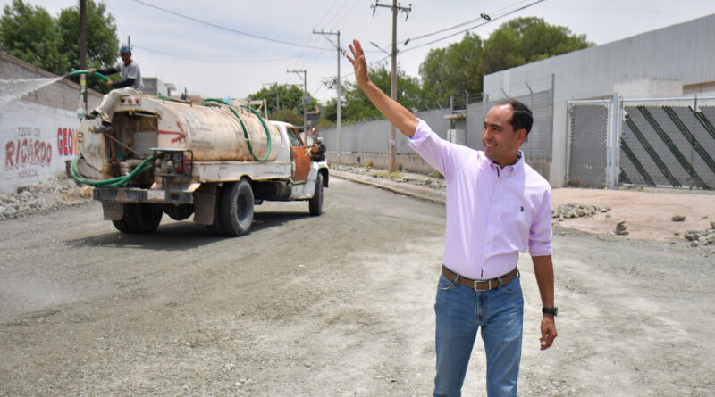 Se realizan trabajos de terracería y pavimentación en calles de la Colonia Parque Industrial