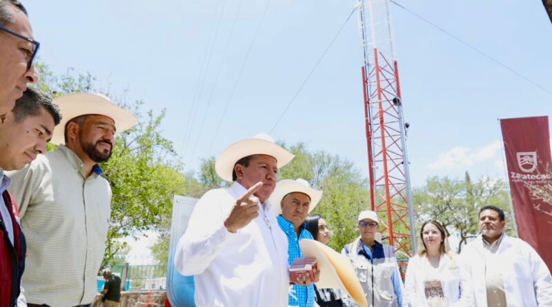 Entrega David Monreal Ávila antena para dar cobertura de servicio celular a pobladores de Villanueva