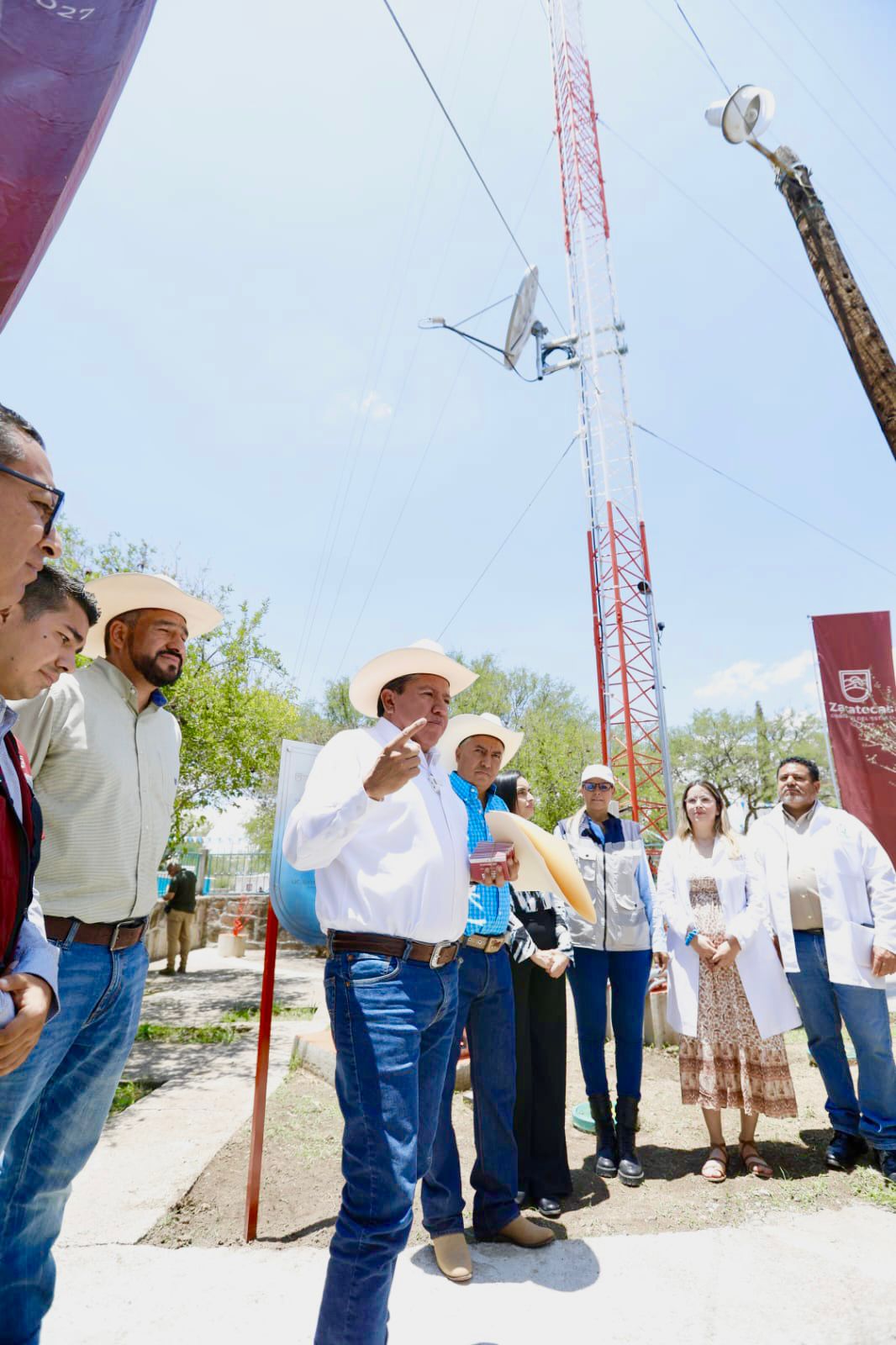 Villanueva, Zac., 13 de julio de 2023.- El Gobernador David Monreal Ávila entregó a la comunidad El Jagüey, en el municipio de Villanueva, una antena de cobertura 4G que permitirá dotar de servicio celular a 433 personas que ahí habitan, como parte de la estrategia Todo Zacatecas Conectado, que se ejecuta en colaboración con la Comisión Federal de Electricidad (CFE), a través de Telecomunicaciones e Internet para Todos (TEIT), para disminuir la brecha digital que enfrenta una parte de la población.