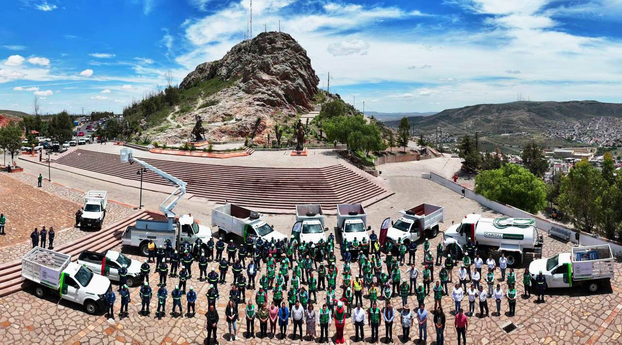 Entre los vehículos entregados, se incluyó una pipa de agua para sumarse a los esfuerzos de llevar el vital líquido a los hogares de la Capital de la Transformación; así como un camión canastilla para el Departamento de Alumbrado Público.