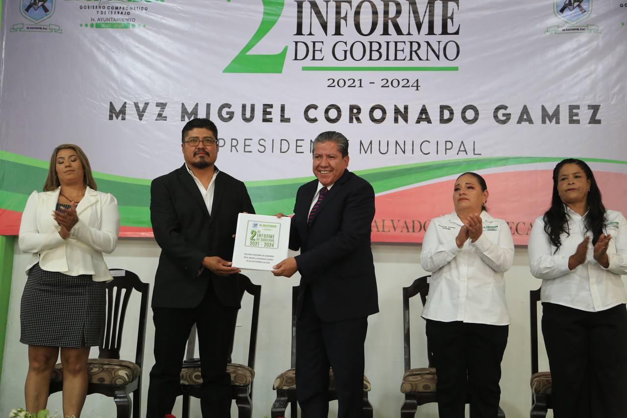 Por su parte, en su propio acto solemne, el primer edil de El Salvador también agradeció la asistencia del Gobernador del cual, destacó, como ningún otro se ha hecho presente de manera recurrente en su municipio, uno de los más alejados y marginados de Zacatecas.