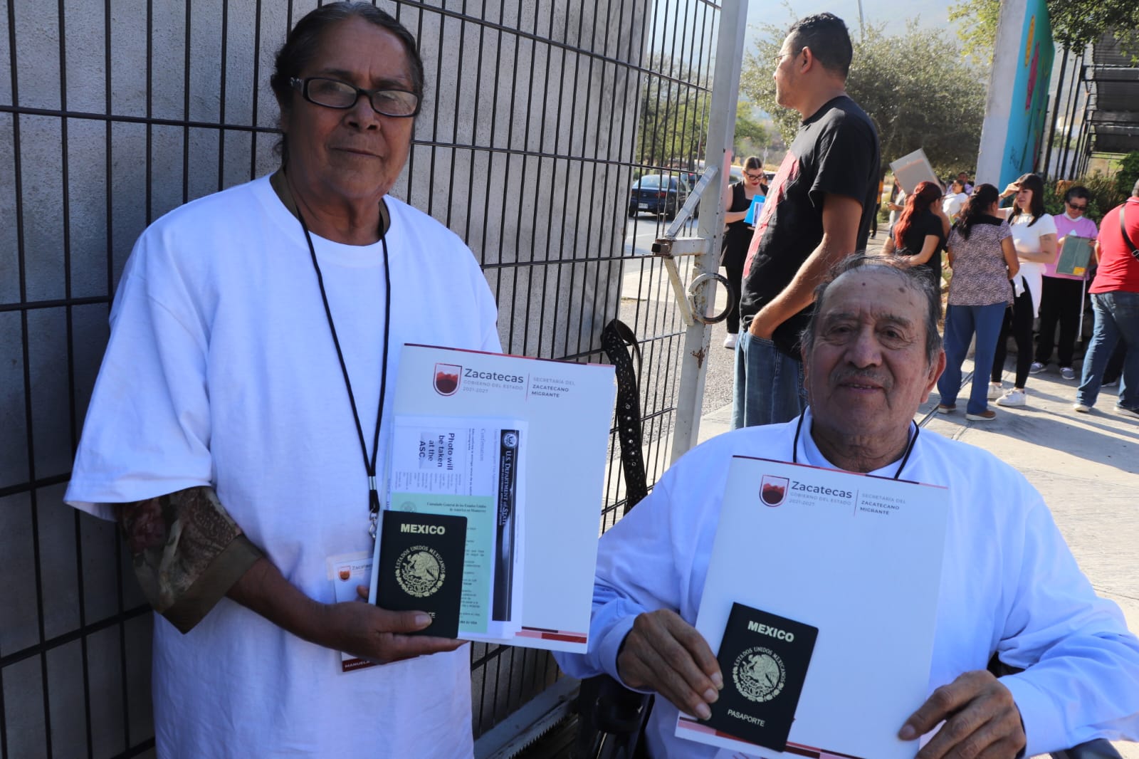A la señora Manuela López y Jesús Calderón, originarios de Sain Alto, les aprobaron su visa, que les permitirá ir al reencuentro con su hija, a quienes tienen más de 20 años de no ver, y también conocer a sus tres nietos. “Gracias a Dios que nos fue bien y a ustedes, al Programa Corazón de Plata, al Gobernador David Monreal, por todo el apoyo que nos han dado”, expresó Doña Manuela.