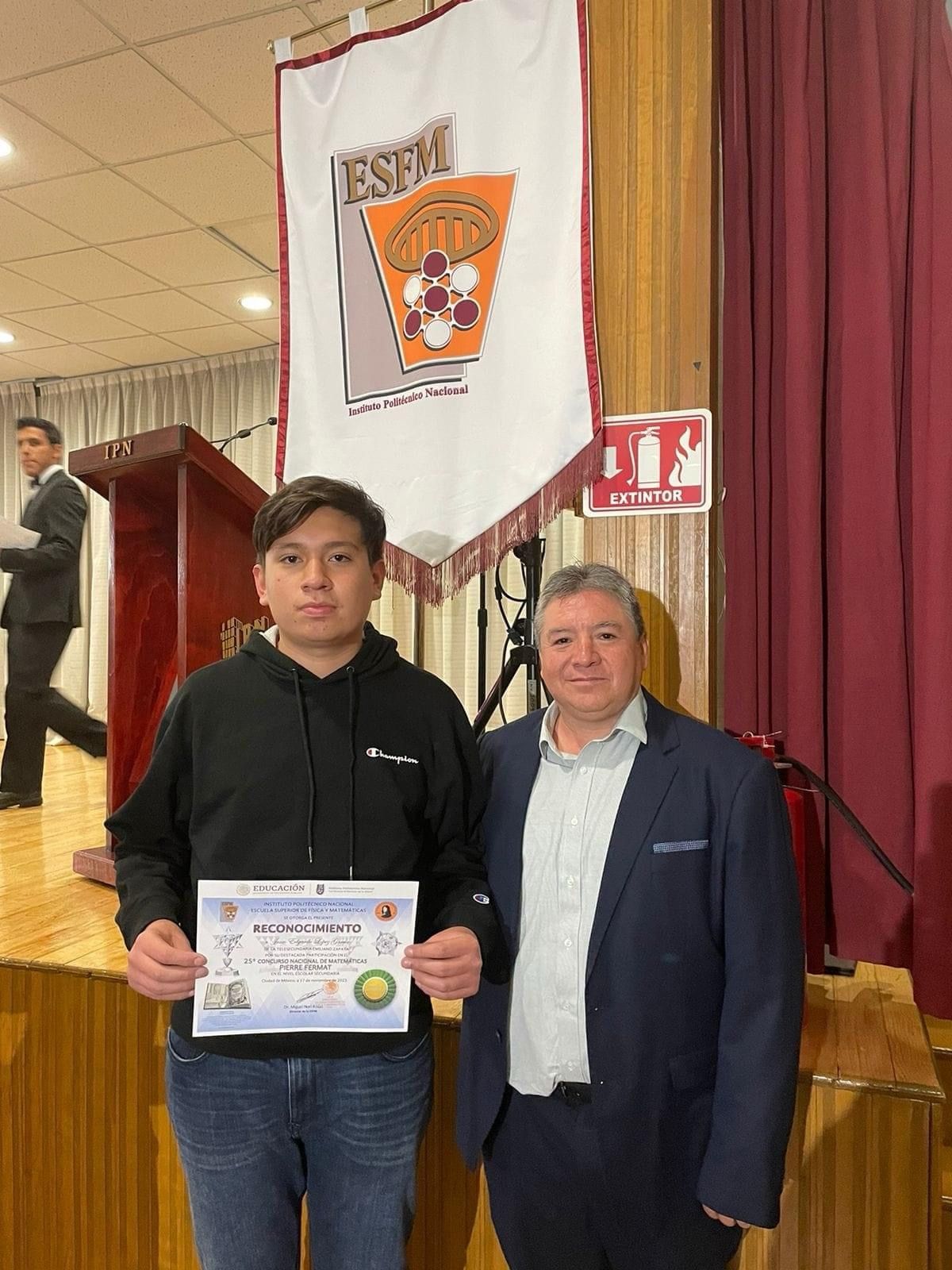 Zacatecas, Zac., 03 de diciembre de 2023- Juan Eduardo López García, estudiante del Colegio de Bachilleres del Estado de Zacatecas (Cobaez), plantel Ojocaliente, logró mención honorífica en la ceremonia de premiación Pierre Femat de la XXV Olimpiada de Matemáticas del Instituto Politécnico Nacional de la Escuela Superior de Física y Matemáticas.
