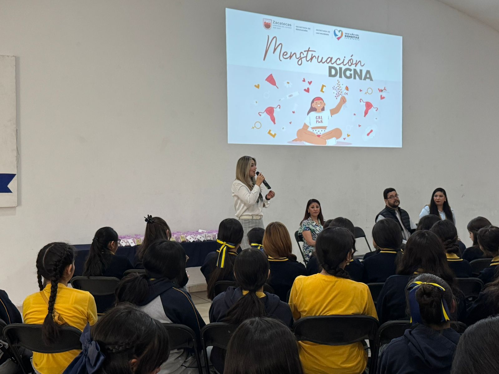 Zacatecas, Zac., 27 de mayo de 2025.- En el marco del 28 de mayo, Día Internacional de la Higiene Menstrual, el Gobierno de Zacatecas, a través de la Secretaría de las Mujeres (Semujer), realizó el taller “Menstruación Digna”, dirigido a 128 niñas de los grados escolares quinto y sexto de primaria, así como de primero, segundo y tercero de secundaria.